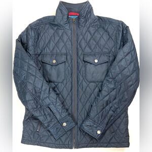 Gently worn UnTuckit Marne Navy Quilted lightweight jacket perfect for fall. Jacket featuring zip close, 2 front snap pockets, 2 zip pockets. Inside jacket has 1 zip pocket and 1 snap closure pocket. See photos for wear and measurements.