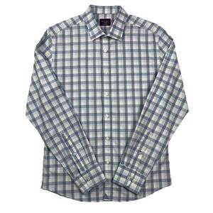 Untuckit Men’s Long Sleeve Button Up Blue White Windowpane Plaid- M