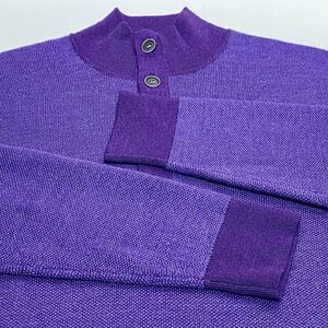 Untuckit Men's M Sorensen Purple Merino Wool Sweater Mock Neck 1/4 Button VGUC