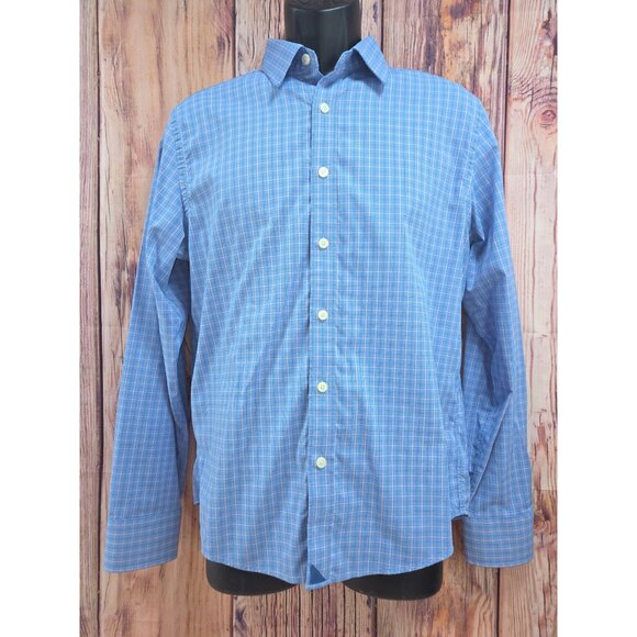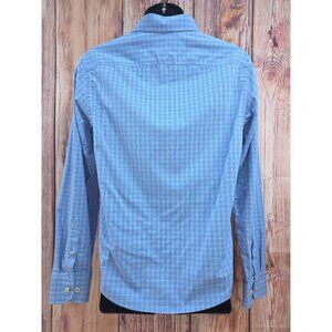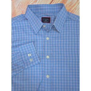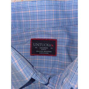 Untuckit Mens Medium Slim Fit Button-Down Shirt Blue & Pink Plaid Nylon/Elastane