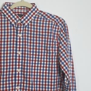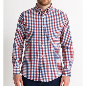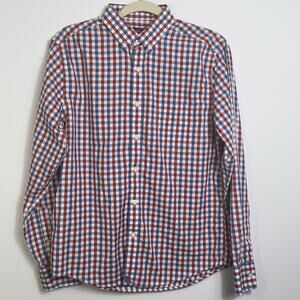Untuckit Men’s Medium Slim Fit Shirt Red White Blue Check Button Down Cotton