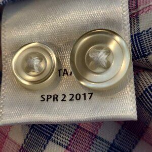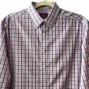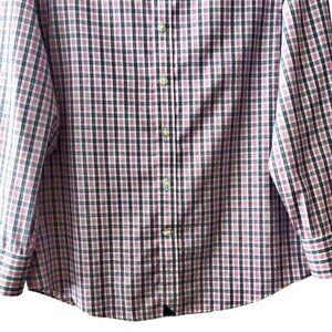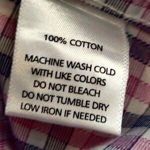 Good condition, minor signs of wear, gently used, no rips, holes or tears, nice pink check plaid, long sleeves, button up, 100% cotton, wrinkle free