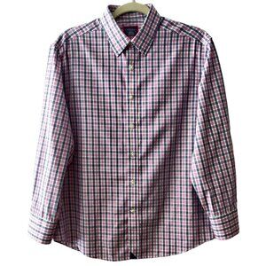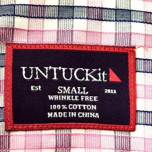 Untuckit Mens Size S Pink Blue Check Plaid Wrinkle Free Long Sleeve Button Shirt