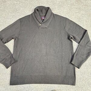Untuckit Men's Sweater L Black Shawl Collar Fine Merino Wool Blend