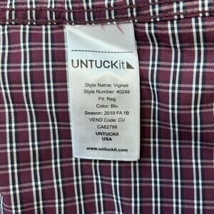 Untuckit Mens Vigneti Large Check Plaid Button-Down Shirt Nylon/Elastane