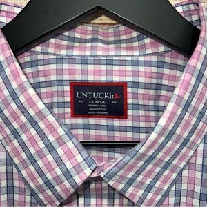 Untuckit Men's XL Long Sleeve Wrinkle Free Plaid Button Up Shirt Pink Blue
