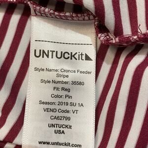 Untuckit Mens XXL Berry and White Striped Polo style Shirt NWOT