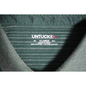 Pre-Owned Untuckit Miro Polo Shirt Mens XL Green Striped Spread Collared Logo Embroidered that may exhibit minor flaws or stains.