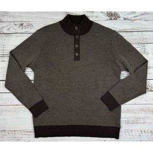 Untuckit Pullover Mens Large Brown Merino Wool Sweater Quarter 1/4 Button
