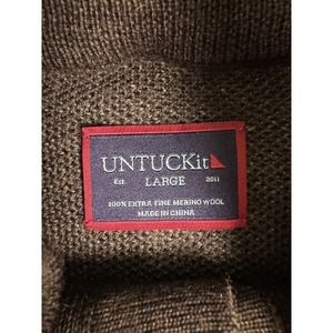 Untuckit Pullover Mens Large Brown Merino Wool Sweater Quarter 1/4 Button. Condition is Pre-owned. Shipped with USPS Priority Mail.