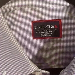 Untuckit Purple Checkered Print Wrinkle Free Cotton Size L Slim Tall