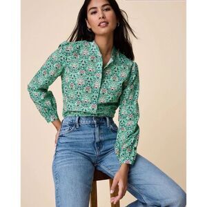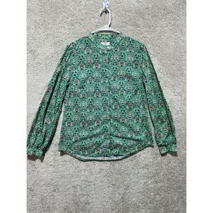 Untuckit Regina Shirt Green Damask Floral Women's 6 Long Sleeve Cotton Blouse