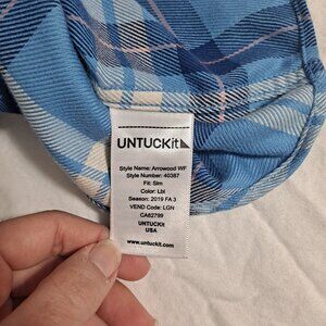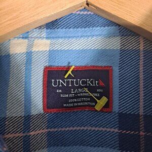 This Untuckit men's shirt in size large is a casual and comfortable choice. The blue plaid, long sleeve collared design is made from cotton, perfect for everyday wear.