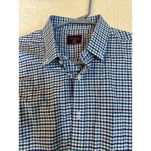 Untuckit Shirt Mens Large Navy Blue Teal Check Short Sleeve Slim Fit Manzanilla
