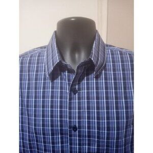 Untuckit Shirt Mens Medium M Blue Plaid Button Up Wrinkle Free Romorantin Cotton
