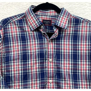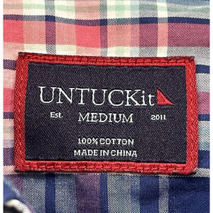 Untuckit Shirt Mens Medium Red Blue Plaid Torrey Ridge Button Down Long Sleeve