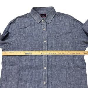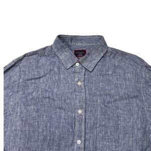Untuckit Shirt Mens Sz XL Blue Slim Fit 100% Linen Button Up Long Sleeve *FLAW*