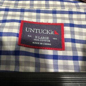Untuckit Shirt Mens XL Blue Gray Plaid Cotton Button Up Long Sleeve