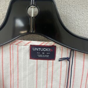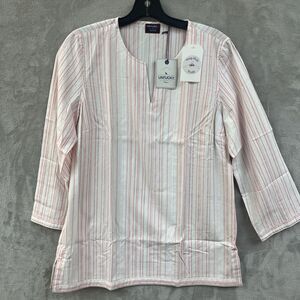 Untuckit Shirt Womens 10 M Thick Cotton Coastal Vertical Stripe Tunic White Top