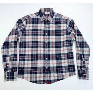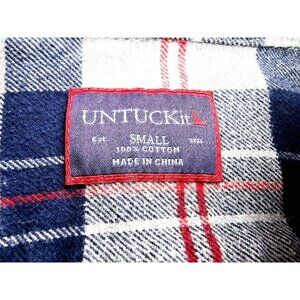 Untuckit Size Small Gray Navy Red Check Flannel Long Sleeve Cotton Logo Shirt