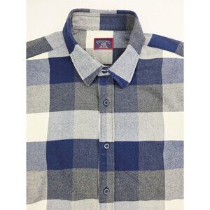 Untuckit Slim Fit Size Large Men Blue White Gray Check Flannel Long Sleeve Shirt