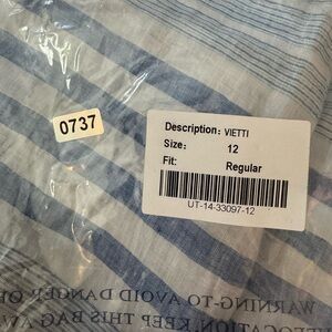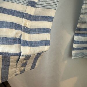 This Untuckit Vietti Long Sleeve Button Down Shirt is brand new and in original packaging. It is blue and white print. It has a linen like feel to it. It is a regular fit and their website says runs smaller than other brands.