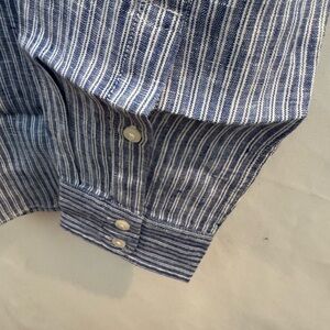 This Untuckit Villa Fiore Long Sleeve Button Down Shirt is brand new and in original packaging. It is blue and white vertical striped. It is a regular fit which their website says runs smaller than other brands.