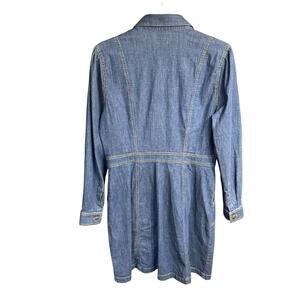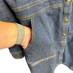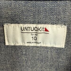 Untuckit Women’s Sz 10 Denim Shirt Dress Button Front Dark Wash Blue Western