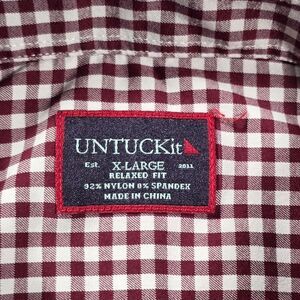 Untuckit Long Sleeve Button Up Shirt Mens XL Red White Check Gingham