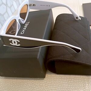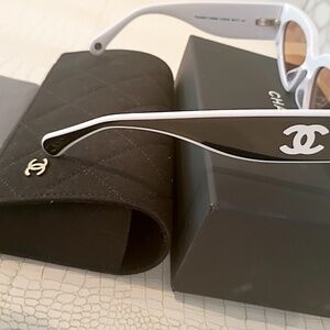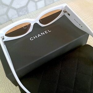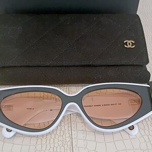 Unused CHANEL Sunglasses Black White Cat Eye CC Logo Italy CH6056 Limited.