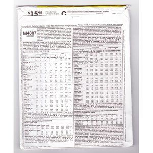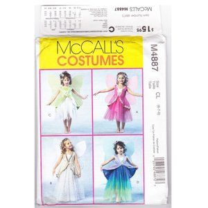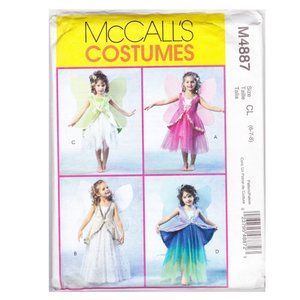 Unused, uncut pattern. McCall's Costumes 4887, girls sizes 6, 7, 8, fairy costumes, pullover dress, vests, skirts, wings, copyright 2005.