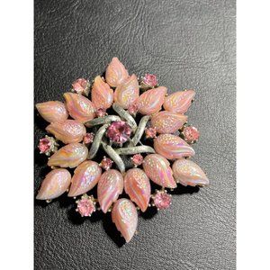 Noted as an Unusual & Signed "Coro" (w/ Pegasus Logo), Figural Flower or Star Brooch as Photographed; Brooch features a Substantial Gold Tone Frame predominately set w/ Molded & Marvelously Iridescent PINK Glass accented w/ Bright Pink Rhinestone Rounds as Shown.