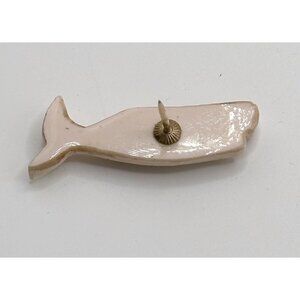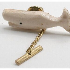 The Unusual Carved Whale Tie Tac Pin is a unique accessory that adds a touch of personality to any outfit. This tie pin features a intricately carved whale design, making it a standout piece for men's jewelry. Perfect for those who appreciate one-of-a-kind items, this tie pin is a stylish addition to any collection. Not sure what it is made out of. Possibly some type of resin. Measures 1.25 x .5 inches. In good condition.
