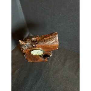 Unusual Interesting Wooden Encased Quartz Clock Handmade Compact Size
