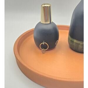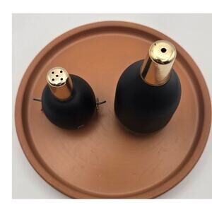 Pepper shakers is designed with black as its main color and green brush strokes on bottom.