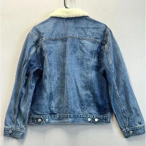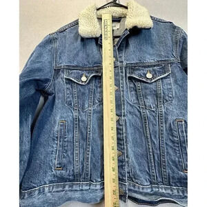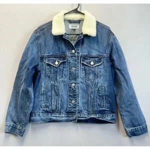 Unveil Women's Size Large Wash Jean Trucker Jacket with Fuzzy Sherpa Collar