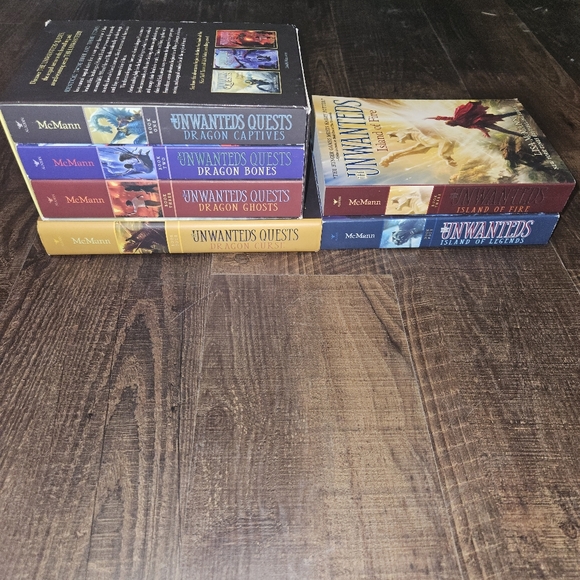 This includes Unwanteds Quests 1-3 paperback boxed set, Unwanteds Quest hardback book 4. Also, Unwanteds paperback books 3 and 4. There are in good, used condition.