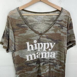 Unwind by League Graphic Tee Hippy Mama camouflage T Shirt short sleeve v neck M