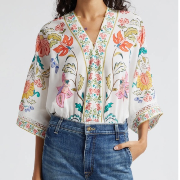 Unworn Farm Rio Off-White Floral Romantic Bodysuit