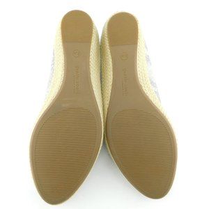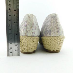 Unworn GENTLE SOULS Shimmer Leather Ruffle Peep Toe Espadrille Wedge Heels 8.5