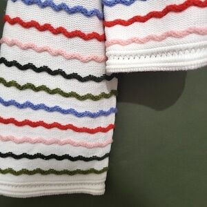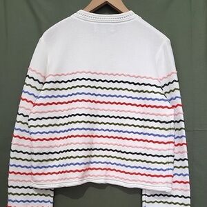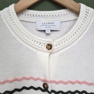 Unworn La Ligne Wool Striped Cotton Collarless Cardigan in White & Multi