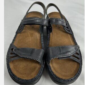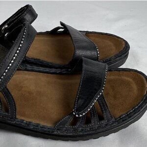 Unworn Naot Black Leather Cutout Adjustable Strap Slingback Sandals Sz 38 US 7