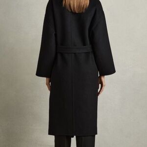 Unworn Reiss Black Bridget Belted Wool Blend Longline Coat