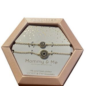 Unwritten CZ Round Evil Eye Mother and Daughter Bracelet Set in 14K Gold Plated