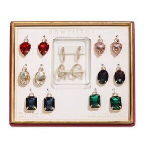 Unwritten Earrings Multi-Color Glass Mix and Match Hoop Interchangeable Set NIB