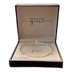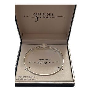 Unwritten Sterling Silver Sideways Cross Catch Bangle Faith Hope Love New