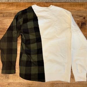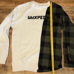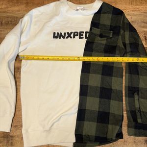 Unxpectd Mens Sz L Split Sweatshirt White/green Flannel