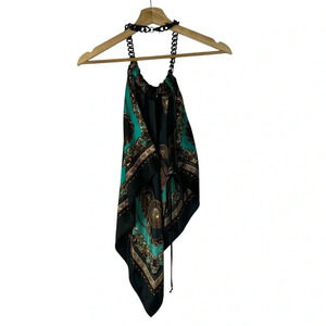 Unyx Y2K Tie Back Blue & Black Printed Satin Bandana Tank Top S
