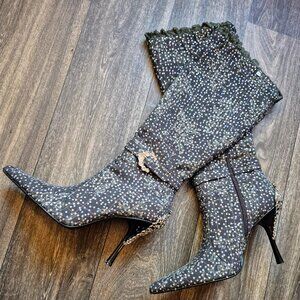 Unze London Crystal Embellished High-Heeled Boots, 10 (41EU)