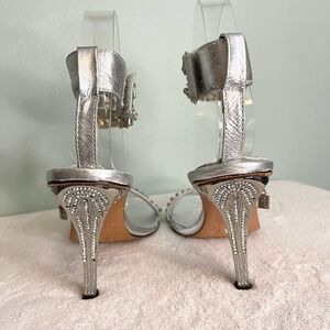 Unze Silver Gemstone Ankle Wrap Stiletto Size 5